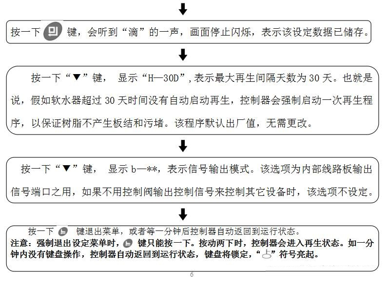 注:因控制閥電子版更新?lián)Q代比較快,程序設(shè)定內(nèi)容不一定完全與本說明書相符,如出現(xiàn)缺項程序,可直接進入下一步。
