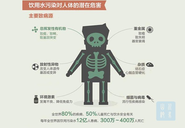 此外,據世界衛(wèi)生組織報道,由于飲用不良水質而導致的消化道疾病、傳染病、結石、皮膚病、癌癥、婦科炎癥等疾病達50多種,現(xiàn)代醫(yī)學證明,人類 死亡原因有80%是由于環(huán)境污染、各種有害物質在體內存留所造成的,而各種有害物質進入體內不被正常排出,有80%的疾病是飲用水造成。
